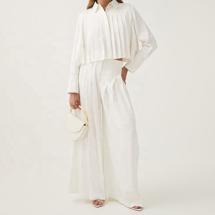 Good Quality Factory Custom Women Linen Cotton Suits Spring Long Sleeve Shirt And Wide-leg Straight Pants Linen 2-piece Set